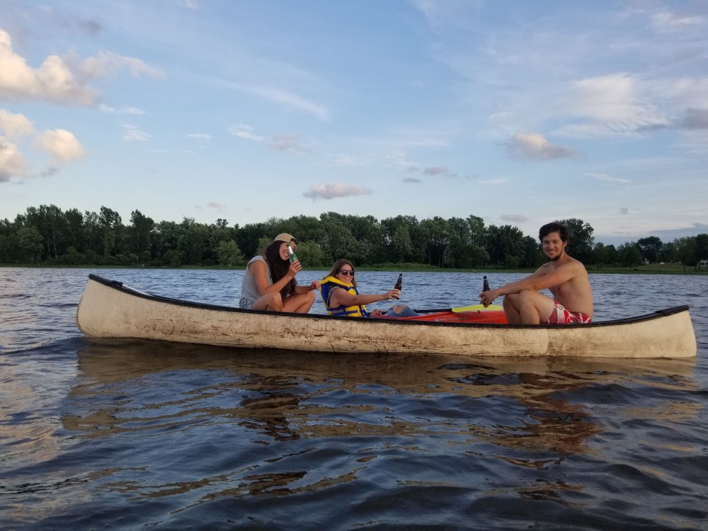 Le premier Dimanche soir. L’anxiété du lundi se fait moins sentir car nous sommes sur le lac avec des amis à contempler le magnifique coucher de soleil qui disparaît sur le lac.