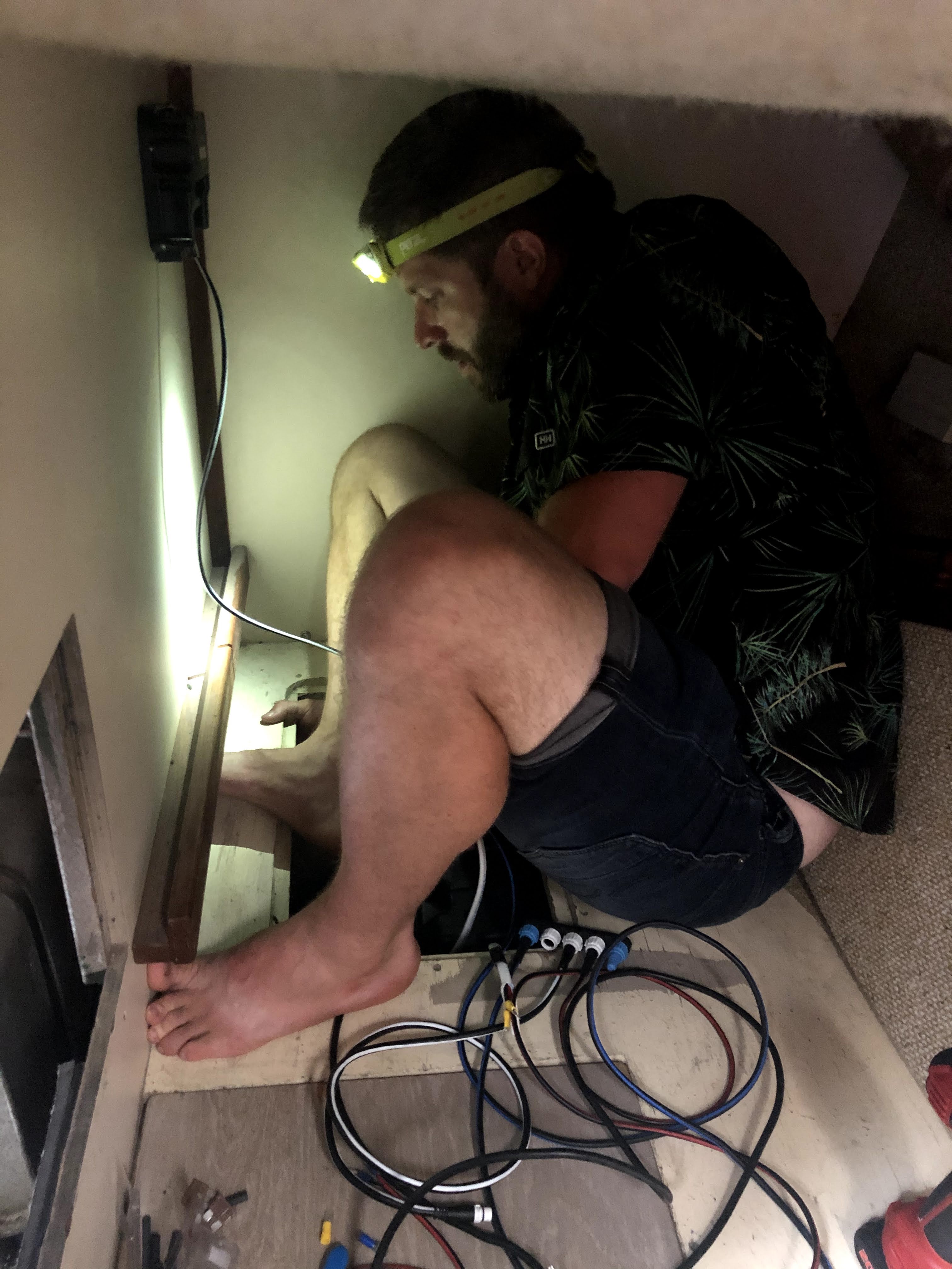 Que c’est-il donc passé cette semaine ? C’était le bordel total dans le bateau ! Simon a passé la semaine à ajuster et installer l’électronique. Chart plotter, auto pilote, moniteur de batteries et autre…