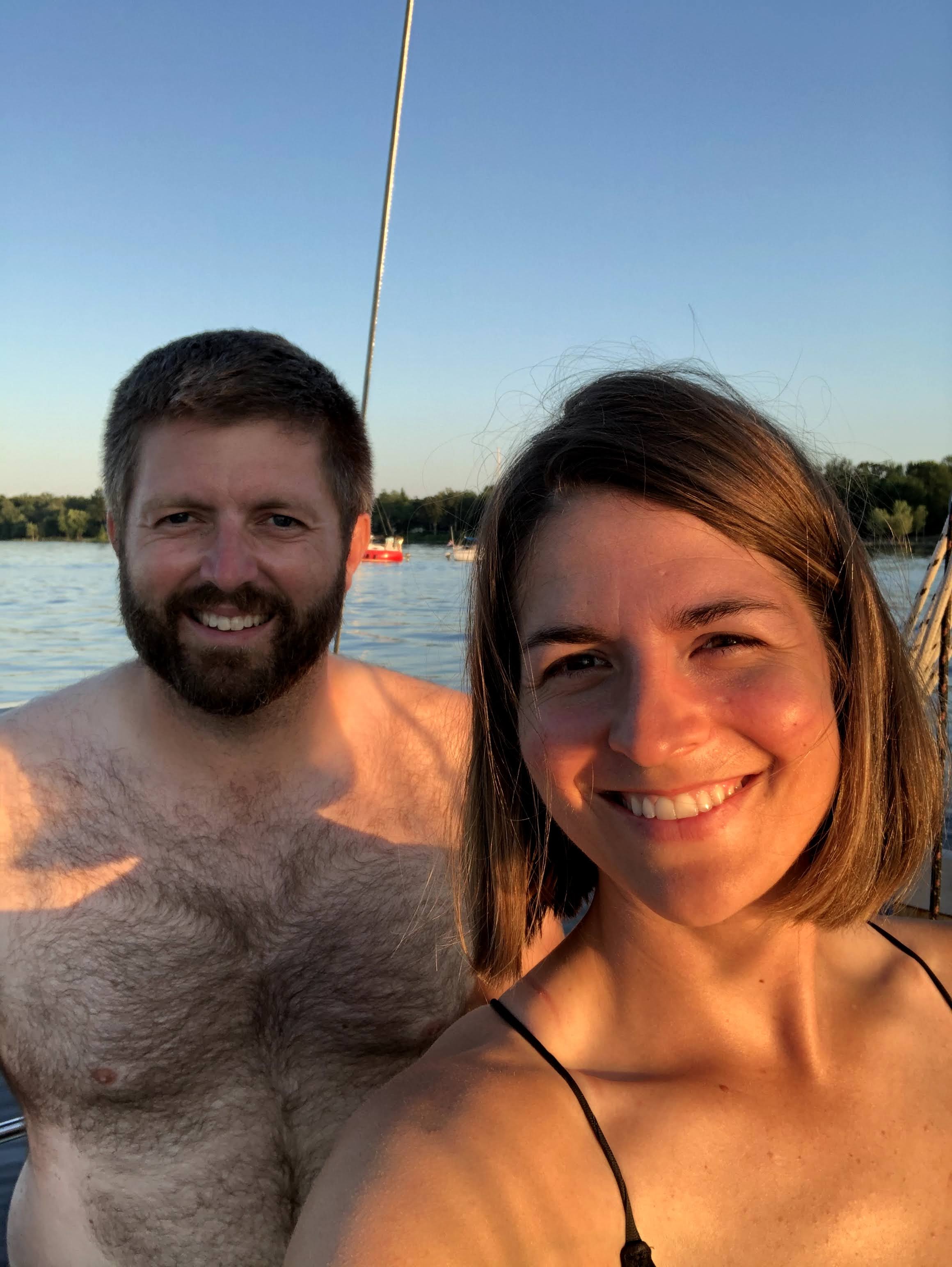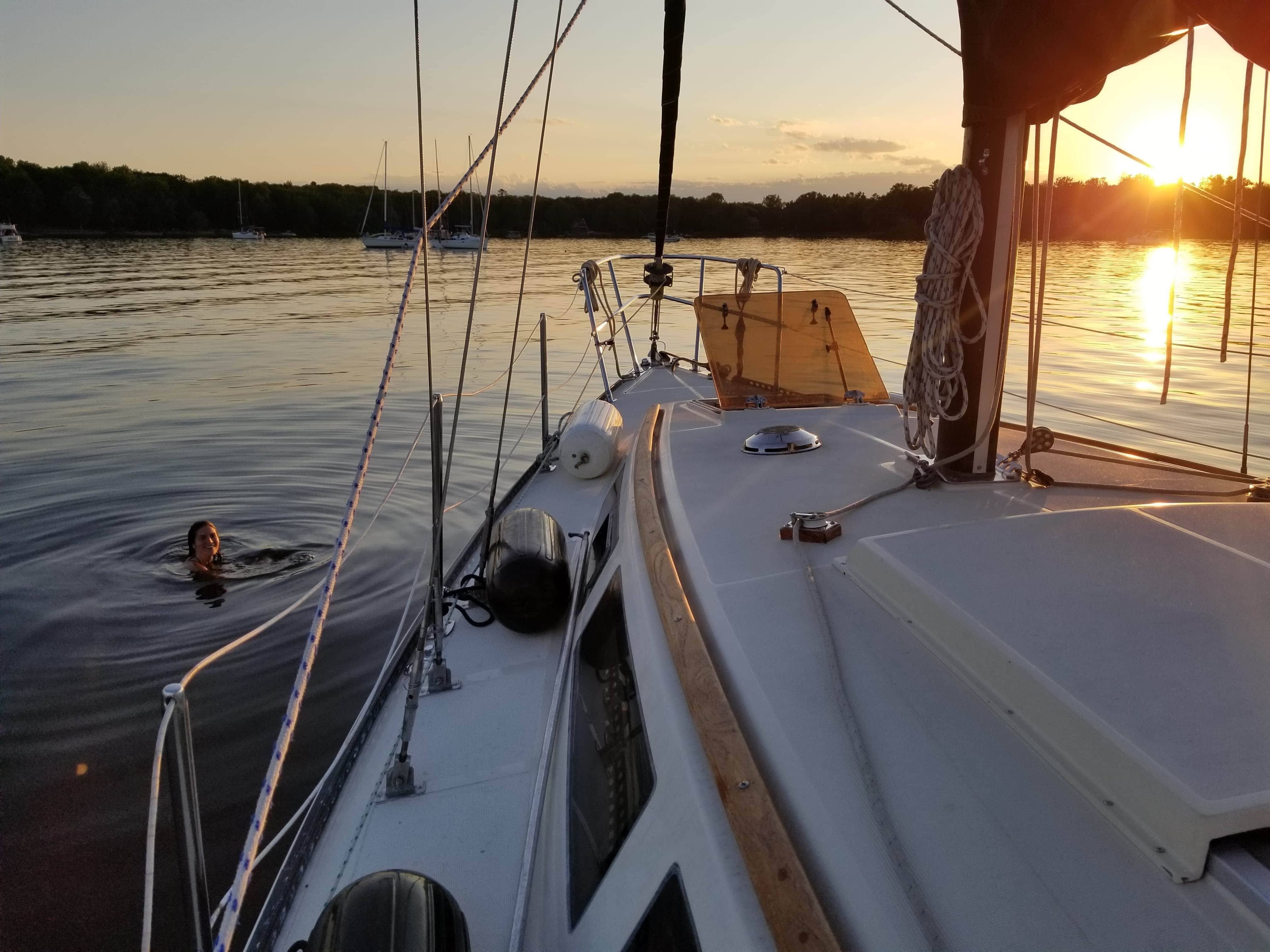 Notre première sortie et baignade se passe le vendredi suivant. Une journée chaude et un coucher de soleil à couper le souffle.