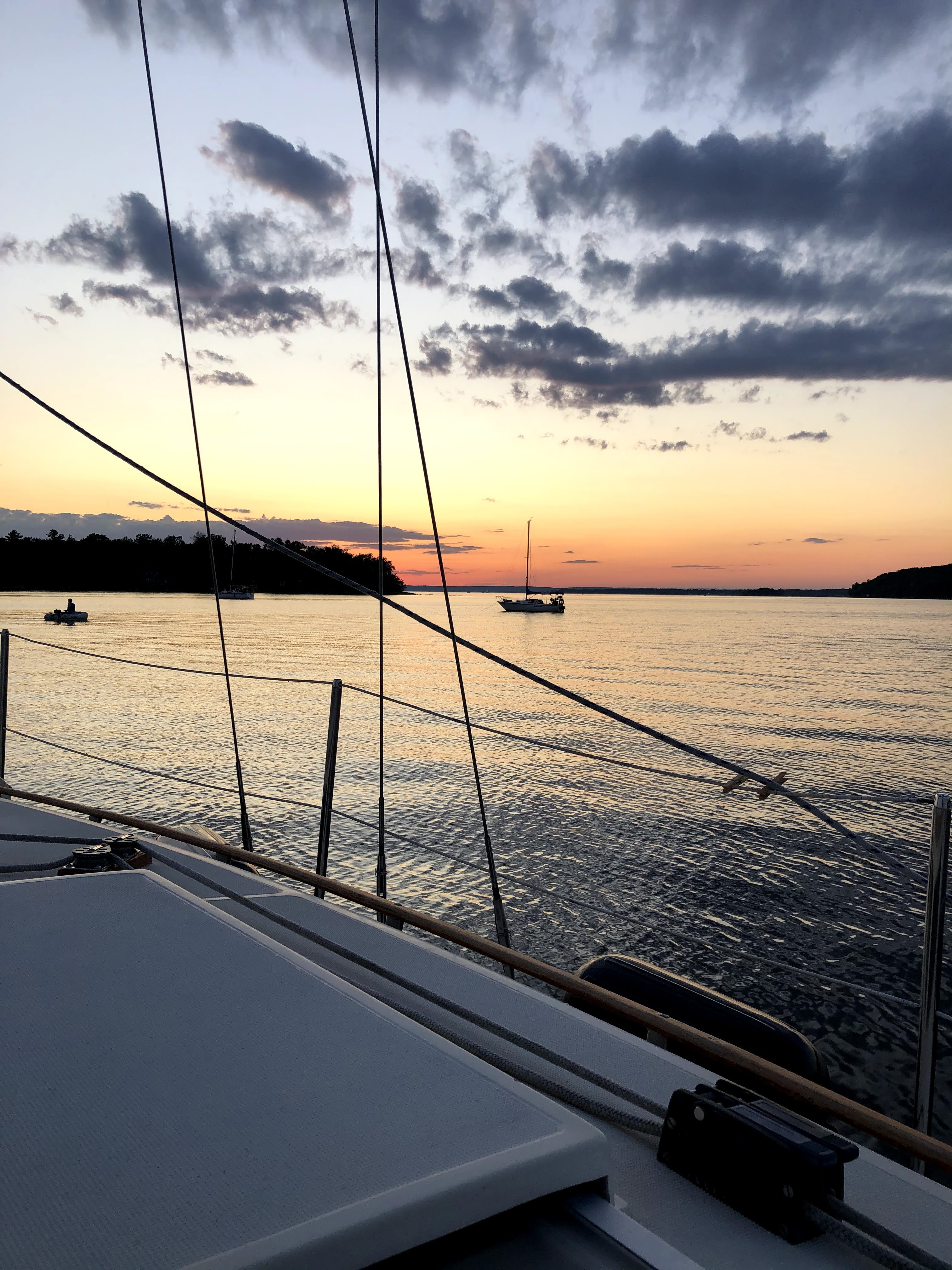 Voici donc notre première semaine qui tire à sa fin. Il est 22:45, vendredi 17 juin. Louis-Jean Cormier joue, Simon s’est assoupi dans la cabine et moi je rédige tout en essayant des nouvelles applis de positionnement d’ancre. On veut dormir la tête tranquille 😴