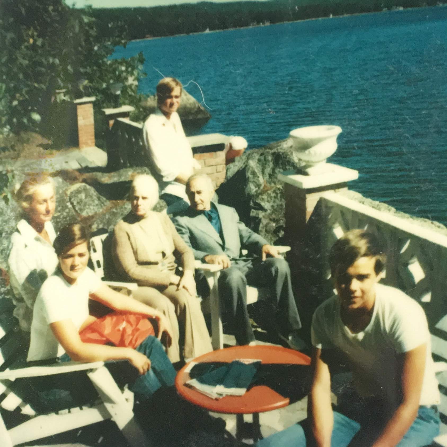 De droite à gauche : Mon oncle Georges, ma mère Francine, ma grand-mère, mes arrières grands-parents et mon oncle Charles – Au chalet